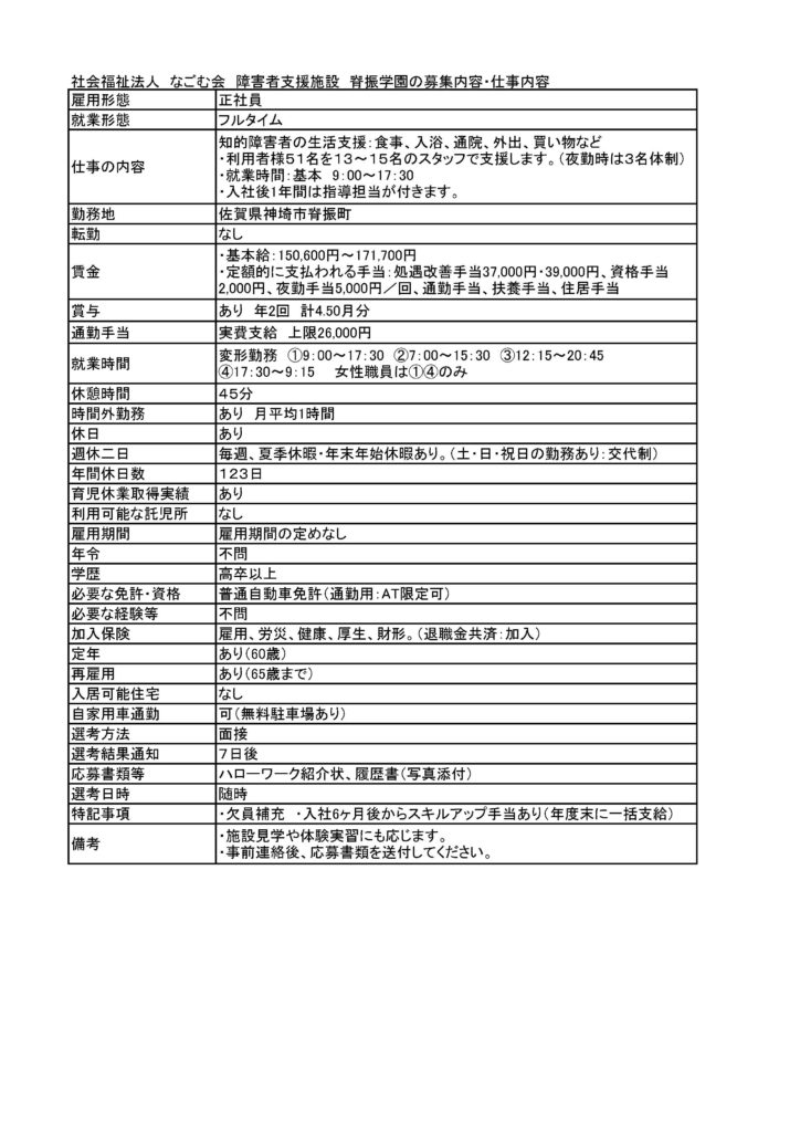 求人票を掲載しました。